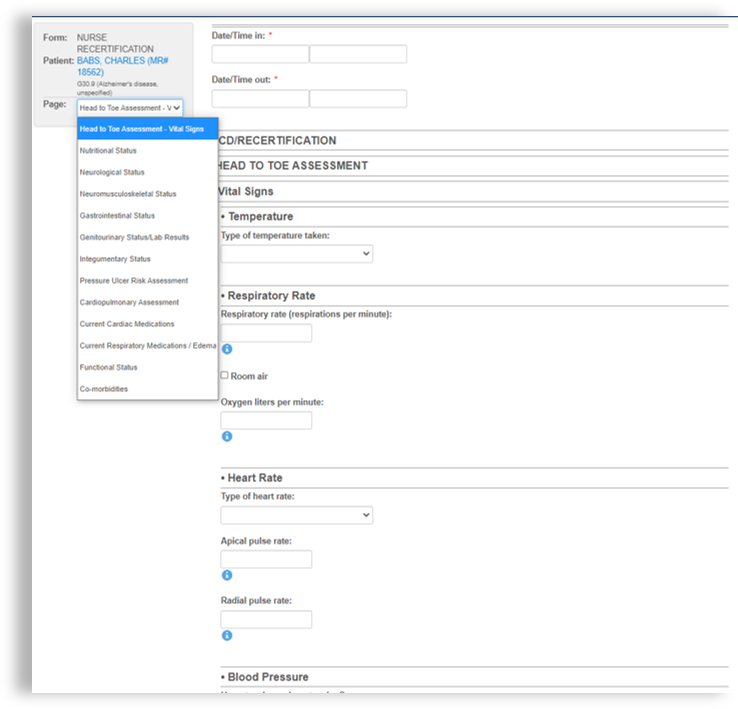 Another helpful form is the Nurse Recertification. This is not a regulatory required form but is completed by the nurse and often used by the hospice physician to develop the narrative portion of the certification.